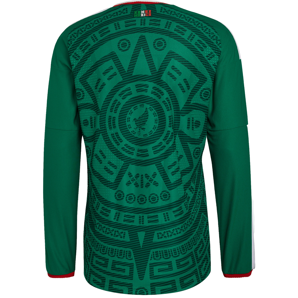 adidas celebrates the vibrant spirit of Mexican football fans with the Mexico 26 Home Authentic Long Sleeve Jersey. This iconic green kit is more than just a jersey. It's a symbol of pride and passion for the hosts of one of the world's biggest sporting events. The jersey features Climacool+ technology, providing targeted cooling. It is body mapped for optimal airflow, while the materials wick and manage sweat quickly. The transfer knit jacquard fabric provides a comfortable feel, helping you to move freely on the field. A heat-applied label with hidden UV print serves as a seal of authenticity. Heritage and innovation go hand in hand with adidas. Whether you're cheering from the stands or playing a game, this jersey embodies the spirit of Mexican football and the excitement of the World Cup. Authorized reproduction by Instituto Nacional de Antropología e Historia, “REP.AUT.INAH”.