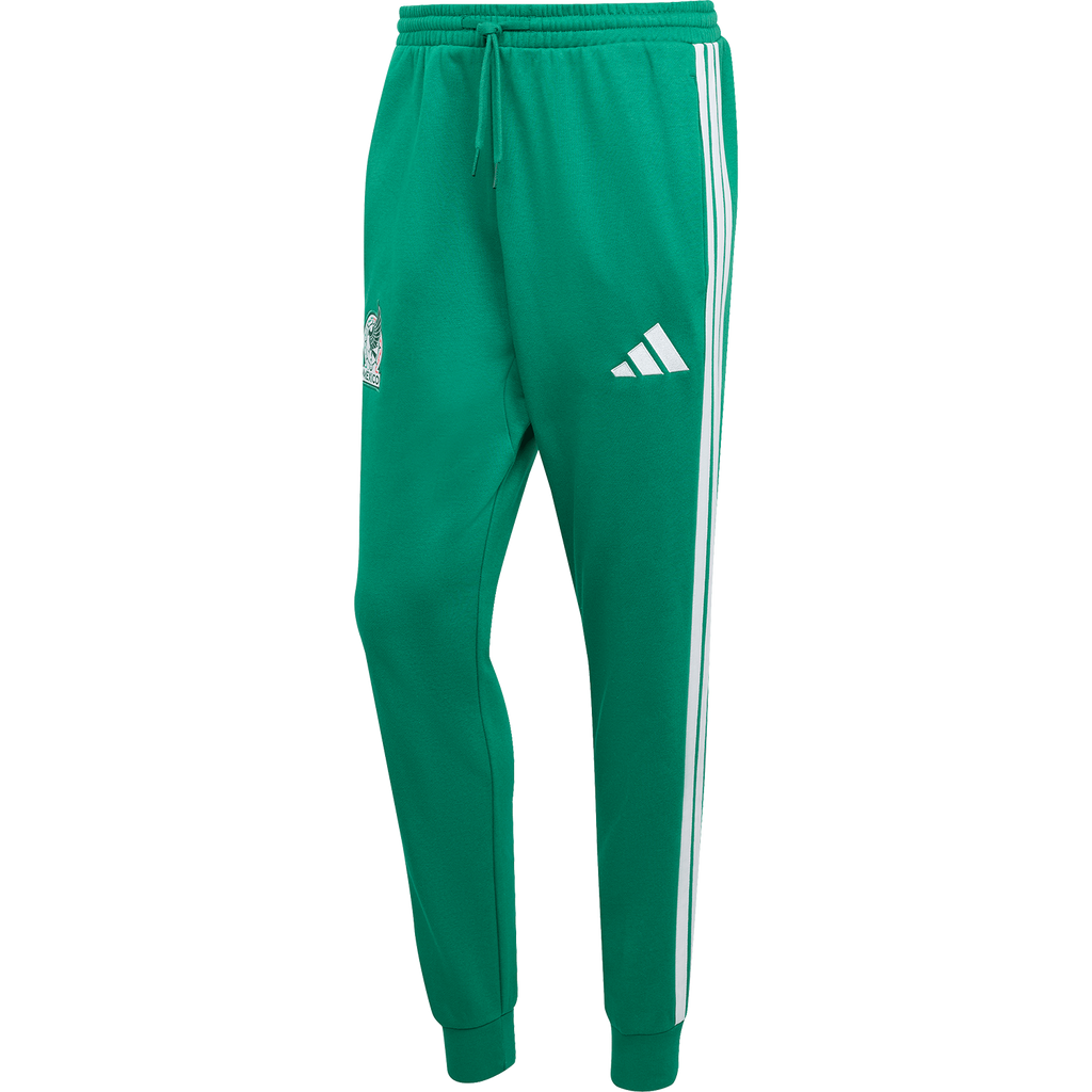 The Mexico DNA Fleece pants bring football inspiration into a versatile, everyday design. Made for fans who carry the game with them, they offer comfort, ease, and a refined athletic profile. Crafted from soft fleece, they deliver warmth and a smooth, cosy feel—built to keep you comfortable when the temperature drops. A mid-rise waist and drawcord closure keep the fit secure. Finished with 3-Stripes and the adidas Performance logo, the look nods to Mexico's football identity. Fine-tuned details and an updated fit make these a confident choice for daily wear.